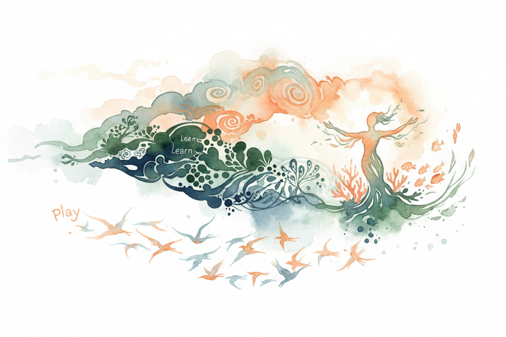 Play — opens the door of curiosity, inviting experimentation without expectation